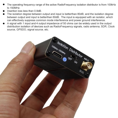 The operating frequency range of the active RadioFrequency isolation distributor is from 100kHz to 150MHz.